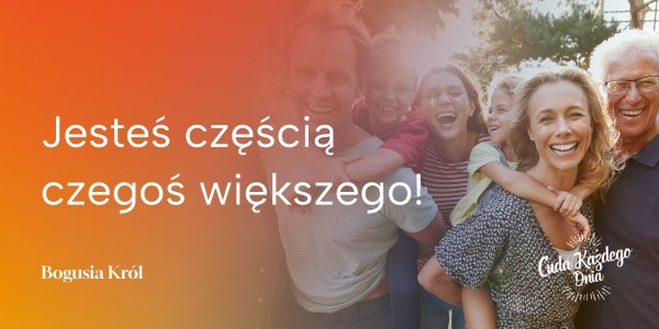 „Cuda Każdego Dnia” to codzienne, pełne zachęcenia rozmyślania biblijne wysyłane w formie wiadomości mailowych. Ich autorką jest Bogusia Król, która od wielu lat wraz z mężem zaangażowana jest w rozwój mediów chrześcijańskich w Polsce.